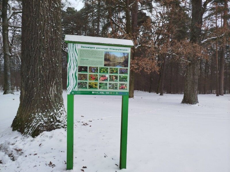 З першими зимовими заметами заповідне урочище «Ківерцівське», в якому розміщена дана стежка, набуває особливої тиші й краси, вкриваючись білим килимом снігу , що додає мальовничості маршруту та вносить свої корективи в роботу з утримання стежки.