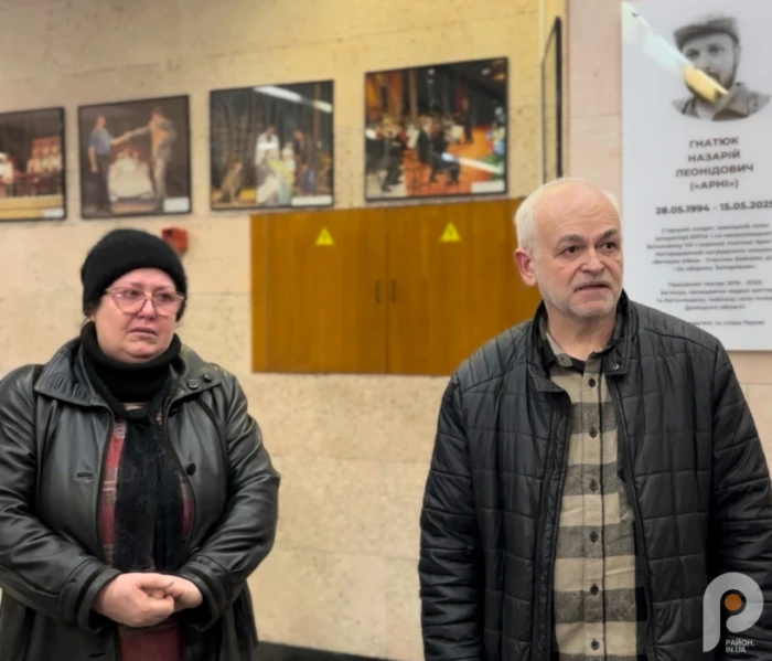 До присутніх звернувся і батько захисника – заслужений артист України Леонід Гнатюк. Він подякував адміністрації та колективу театру за ініціативу встановлення меморіальної дошки й підтримку родини.