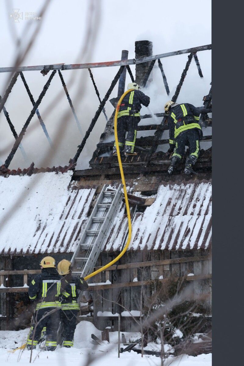 9 січня о 14:24 надійшло повідомлення про пожежу у с. Боратин Луцького району: горіла господарська будівля, розташована поруч із житловим будинком