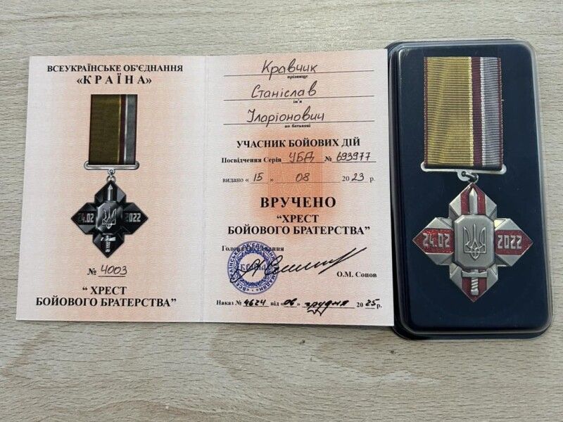 Капітан у відставці Кравчик Станіслав Іларіонович вручили нагороду «Хрест бойового братерства». Це народний знак пошани, і призначений для відзначення військових, які пройшли горнило війни, виявляючи героїзм та відданість, і надає право на певну підтримку та визнання.