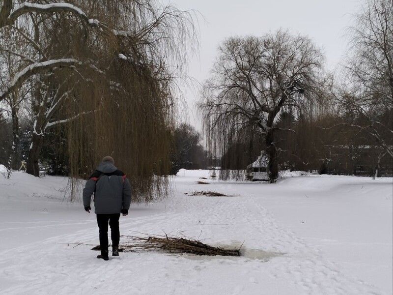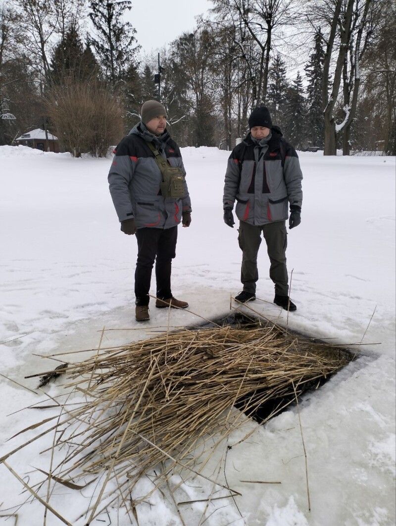 Працівники КП «Парки та сквери» облаштовують ополонки з рогозом, щоб запобігти замору риби