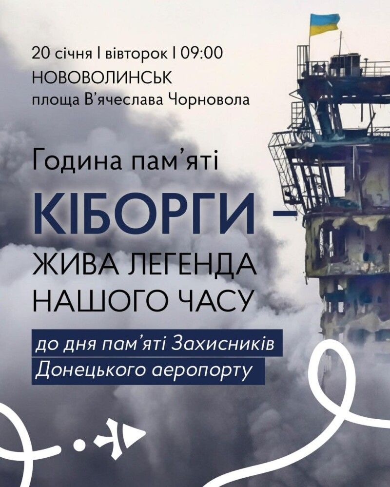 «У вівторок, 20 січня, на площі В’ячеслава Чорновола у Нововолинську відбудеться година пам’яті «Кіборги – жива легенда нашого часу».