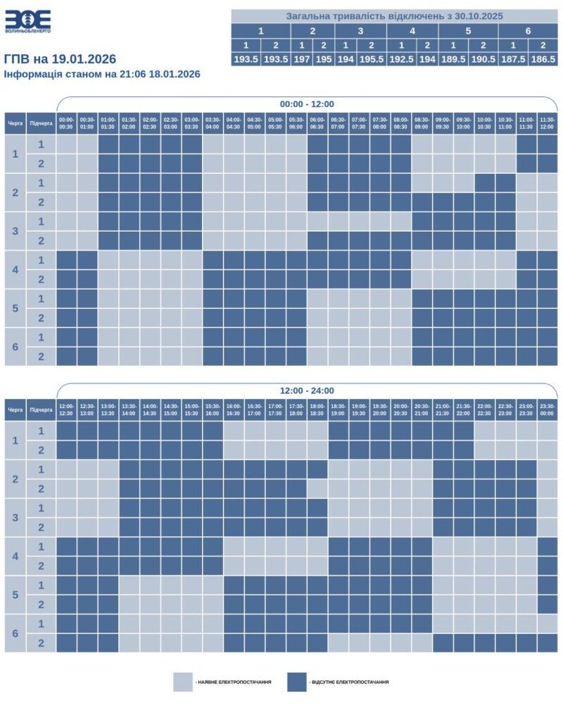 ГРАФІКИ ПОГОДИННОГО ВІДКЛЮЧЕННЯ на 19 січня діють в такому обсязі:
