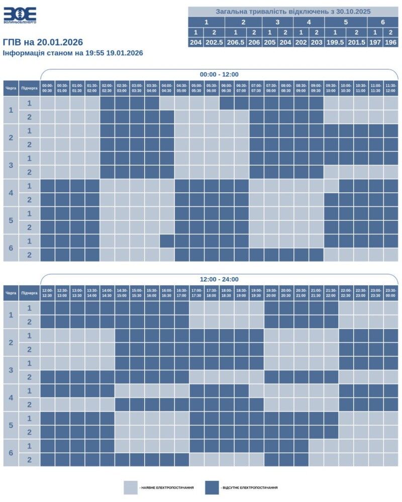 ГРАФІКИ ПОГОДИННОГО ВІДКЛЮЧЕННЯ на 20 січня діють в такому обсязі: