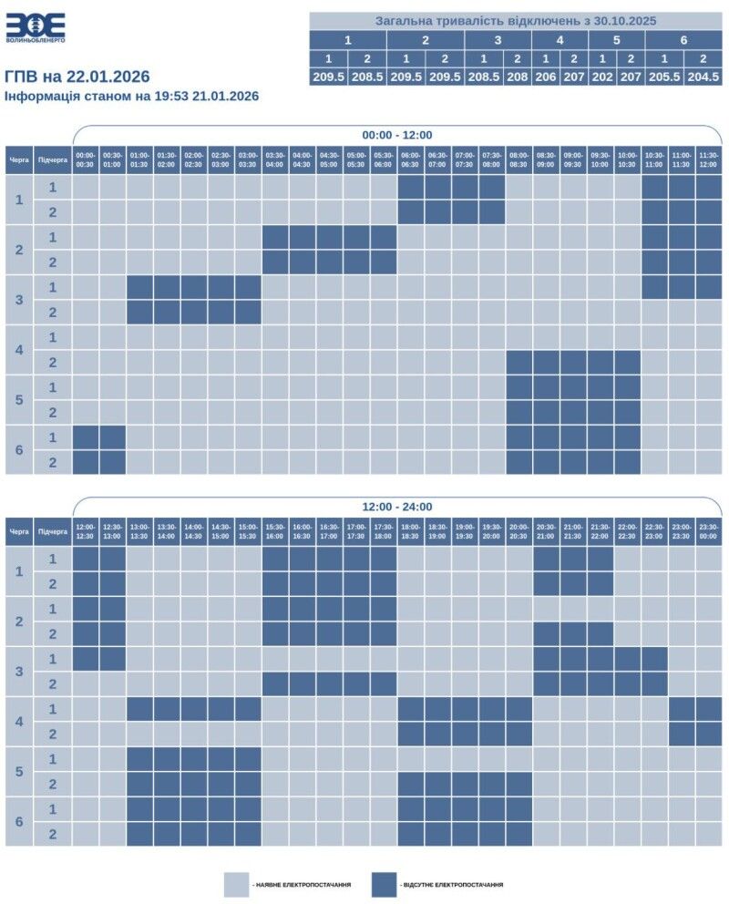 ГРАФІКИ ПОГОДИННОГО ВІДКЛЮЧЕННЯ 22 січня діють в такому обсязі: