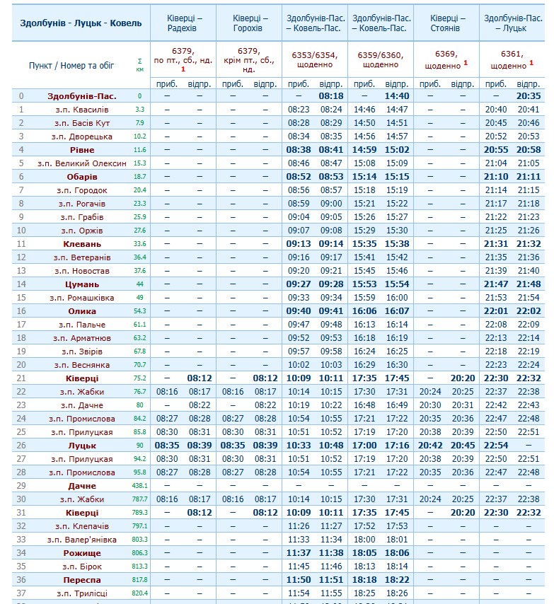 У Ковелі оновлення графіків руху стосується п'яти приміських поїздів за напрямками: «Ковель-Здолбунів», «Шептицький-Ковель» та «Здолбунів-Ковель».
