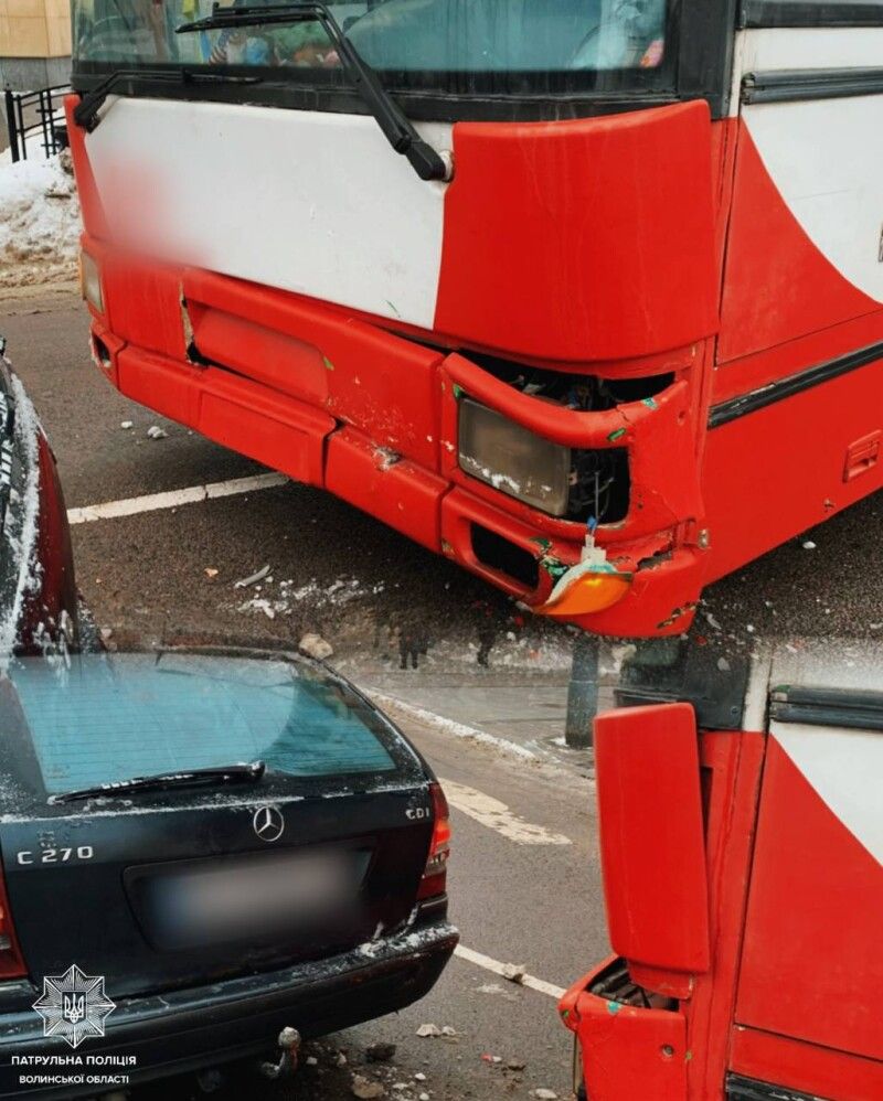 Водій тролейбуса не дотримався безпечної дистанції та здійснив зіткнення з автомобілем Mercedes-Benz, який зупинився перед нерегульованим пішохідним переходом, щоб пропустити пішохода.
