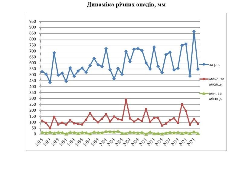 2025 рік: нестійка зима з періодичним таненням снігу, опади ~100 мм, тривалість снігового покриву – 40–45 днів.