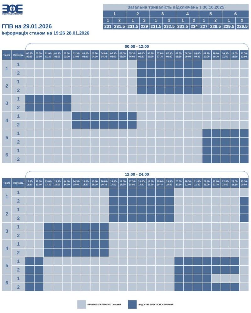 Час відключення та відновлення електропостачання може відрізнятись від заявленого у графіку на 20-30 хвилин, інформує «Волиньобленерго».