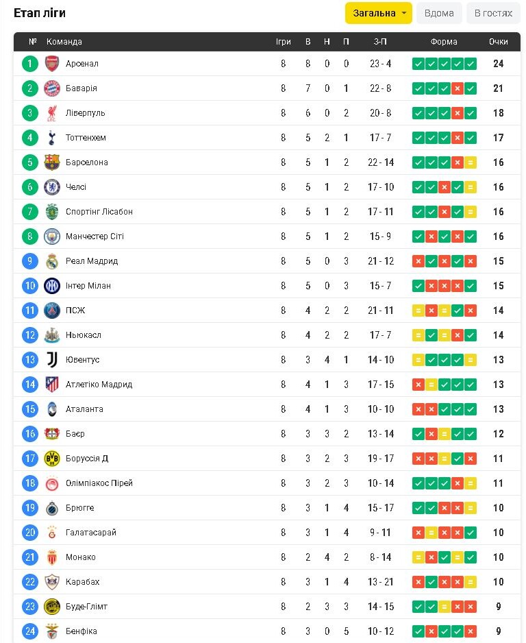 Ліга чемпіонів-2026. Підсумок групового етапу:
