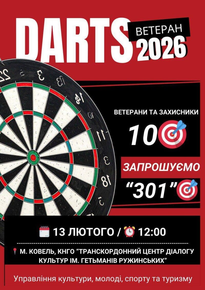 Місто на Волині запрошує ветеранів та захисників на відкритий турнір з дартсу