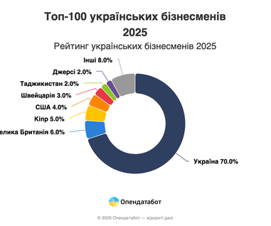 = 70% бізнесменів, що потрапили у ТОП-100, мають українську реєстрацію.