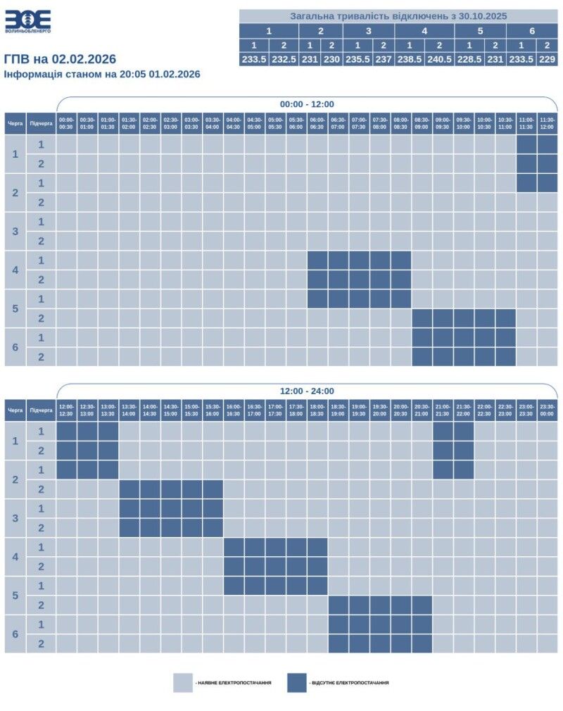 Час відключення та відновлення електропостачання може відрізнятись від заявленого у графіку на 20-30 хвилин, інформує «Волиньобленерго».