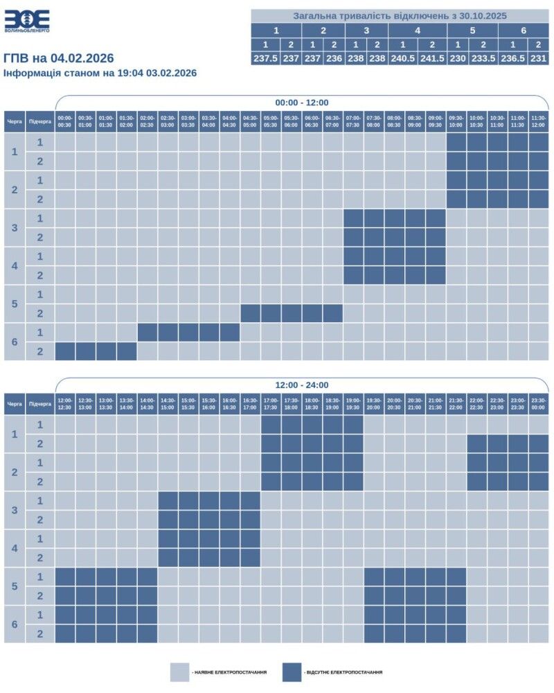 Час відключення та відновлення електропостачання може відрізнятись від заявленого у графіку на 20-30 хвилин, інформує «Волиньобленерго».