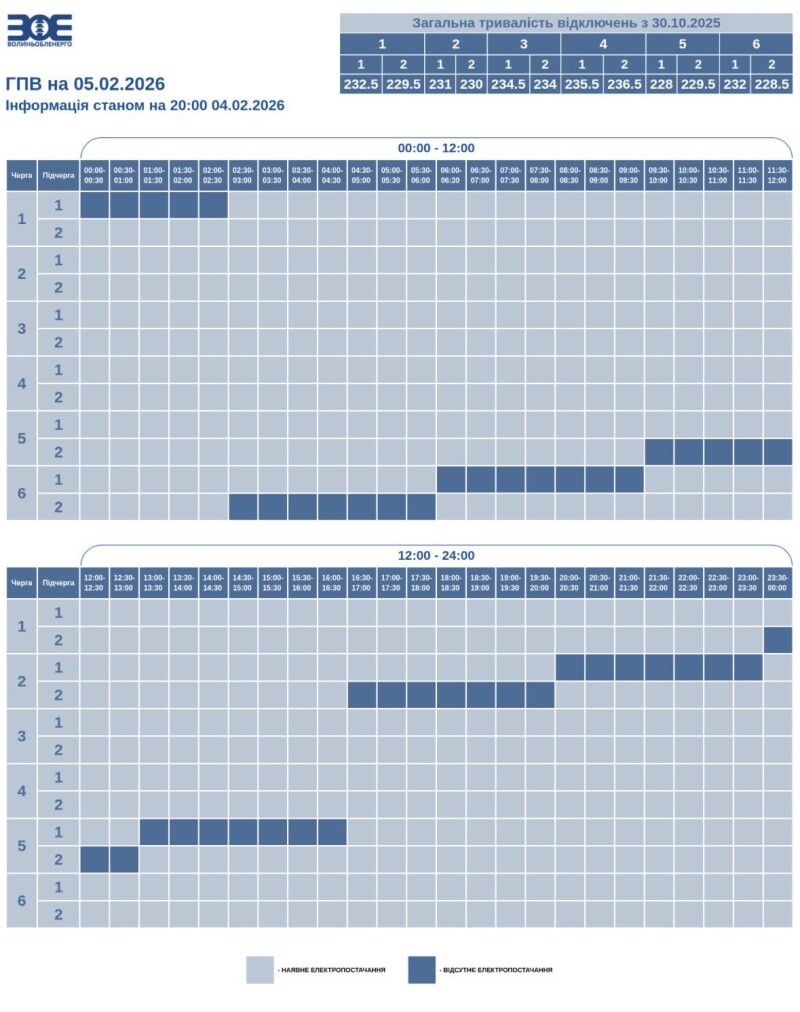 Час відключення та відновлення електропостачання може відрізнятись від заявленого у графіку на 20-30 хвилин, інформує «Волиньобленерго».