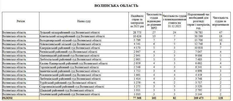 Рада суддів України оновила інтерактивну карту судів України з розрахунками нормативів навантаження на суддів і суди з урахуванням кількості справ, які розглядалися судами впродовж 2025 року.