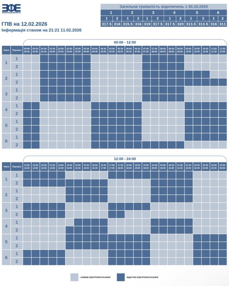 Як 12 лютого у Волинській області вимикатимуть електрику