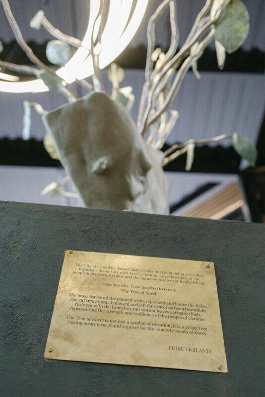 Так з’явилося «Tree of Kovel» — «Дерево Ковеля». В основі композиції — частина стовбура з гілками, прикрашеними листям. Опалі елементи символізують наших Героїв, які не повернулися з війни.