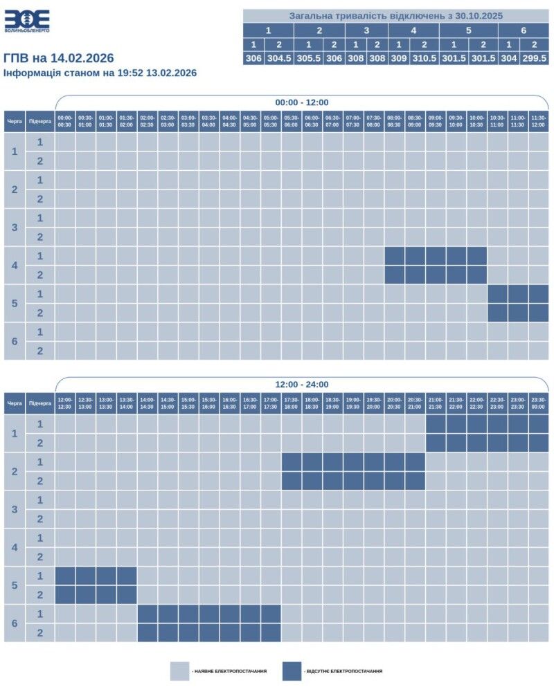 Графіки вимкнення електрики у Волинській області 14 лютого