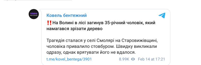 Трагедія сталася у селі Смолярі на Старовижівщині