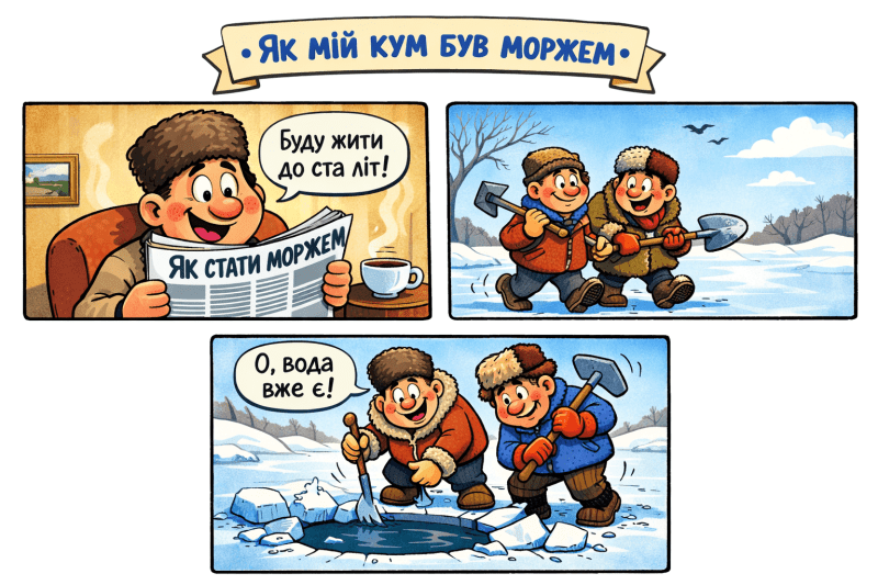 «Кум в газетах начитався про «моржів» і скупатись в ополонці захотів…»