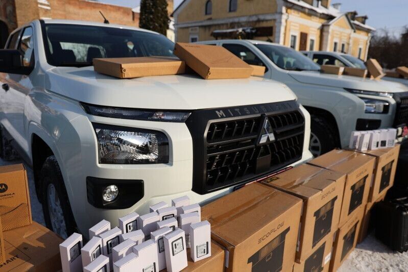 На фронт поїдуть три пікапи Mitsubishi L200, 40 квадрокоптерів Mavic, FPV-дрони, зарядні станції, системи супутникового зв’язку Starlink, РЕБи, генератори, рації та багато іншої техніки для виконання бойових завдань на Куп’янському, Покровському Краматорському, Торецькому, Костянтинівському напрямках.