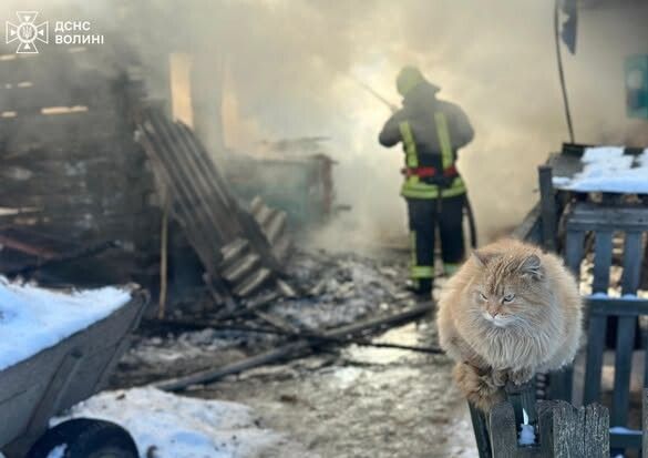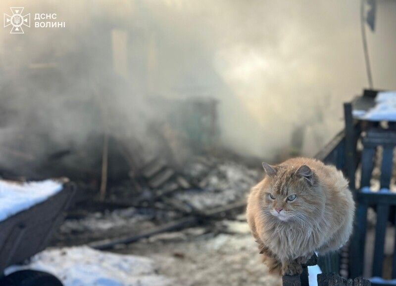 На Волині під час пожежі вогнеборці врятували кота (Фото)