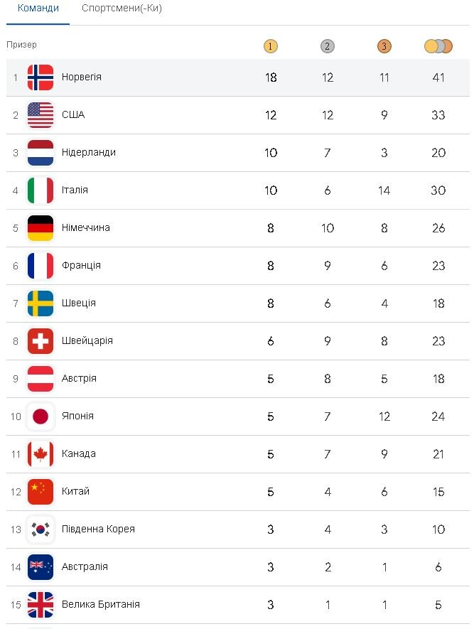 Підсумковий медальний залік Олімпіади-2026: