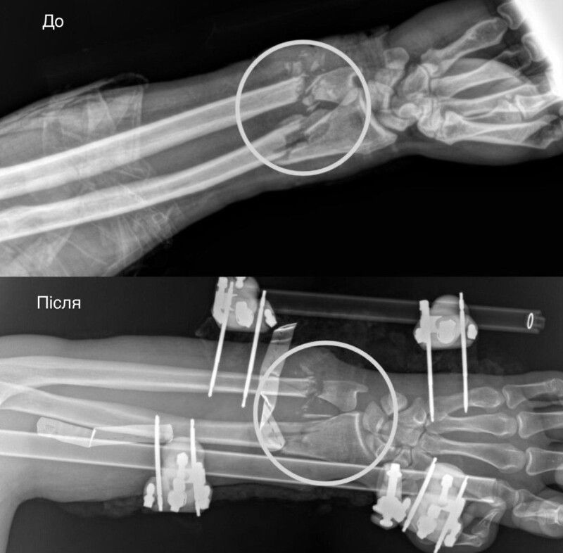 Першими свою роботу в операційній виконали ортопеди-травматологи. Вони стабілізували переламані кістки передпліччя за допомогою апарата зовнішньої фіксації. Після чого вже судинні хірурги взялися відновлювати кровопостачання. Цей етап був вирішальним, адже без циркуляції крові тканини б швидко змертвіли. Однак, на щастя, хірургам вдалося успішно зшити судини.