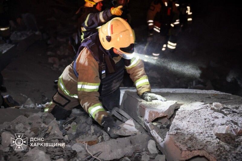 Тим часом у Харкові з ночі триває розбір завалів житлового будинку, в який влучила російська балістична ракета.