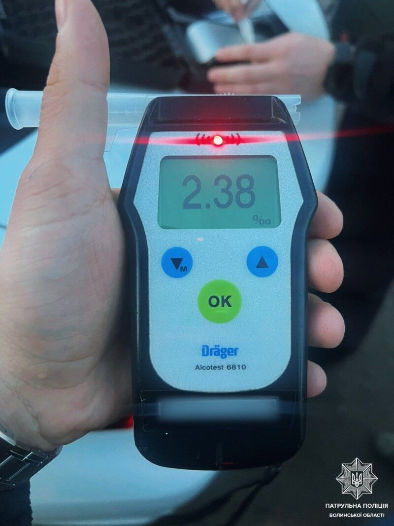 Під час спілкування з водієм патрульні помітили у нього явні ознаки алкогольного сп’яніння. Огляд на стан сп’яніння чоловік пройшов на місці зупинки за допомогою приладу Драгер. Результат — 2,38 проміле, що майже у 12 разів перевищує допустиму норму.