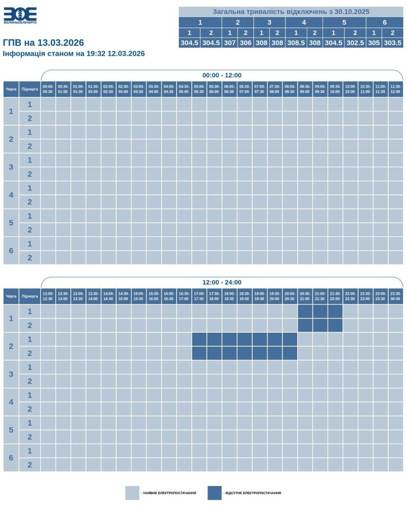 Час фактичного відключення та відновлення електропостачання може відрізнятися на 20–30 хвилин.