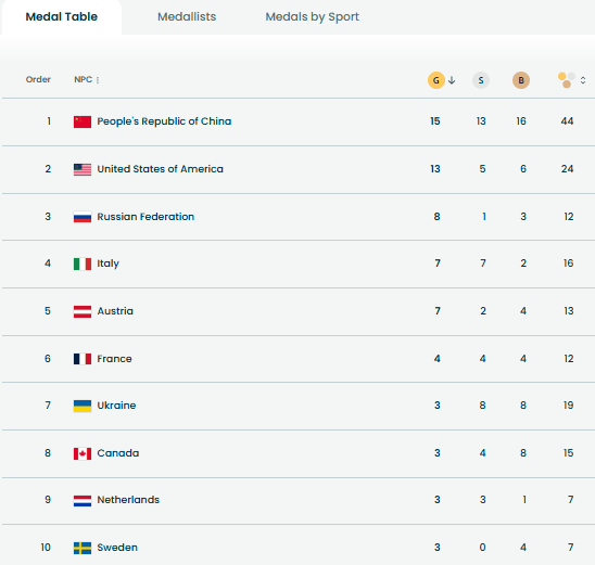 Медальний залік Паралімпіади-2026: Україна – у ТОП-3