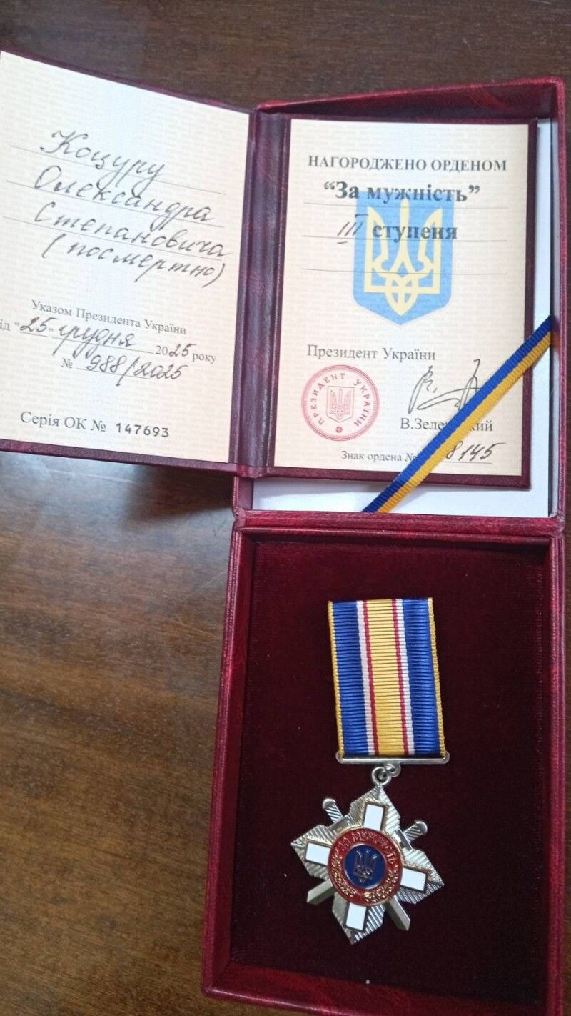 Днями родині Захисника України — Коцури Олександра Степановича — було вручено державну нагороду — орден «За мужність» ІІІ ступеня (посмертно).