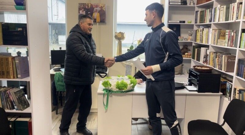 Батько Героя України Івана Тарасюка – Микола Тарасюк – із Кубком турніру, який у 2017 році виборов ФК «Олика».