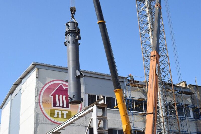 Зокрема, впродовж дня – з 09:00 до 13:00 – за допомогою 50-тонного автокрана у приміщенні котельні було змонтовано чотири складові установки. Найбільша з них – конденсаційна колона висотою 8,5 м та вагою 8,9 т.