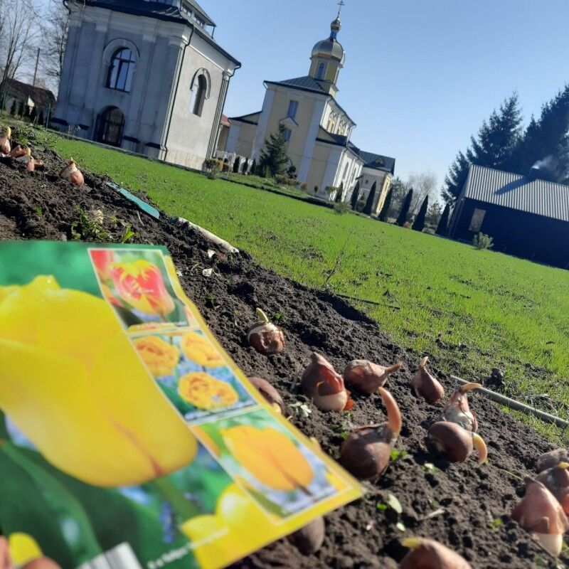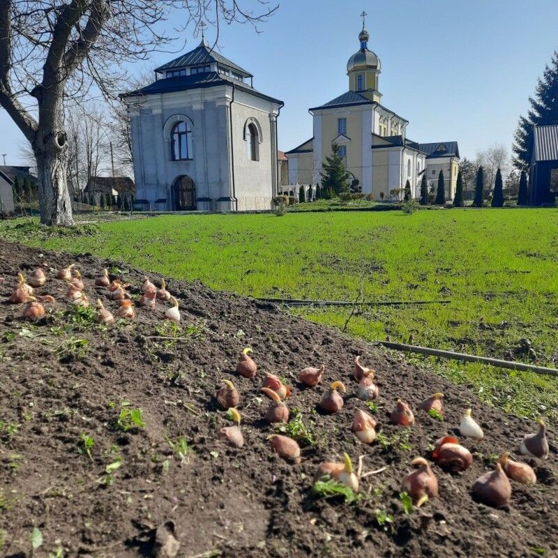 Земля прокидається від сну, а ми розпочинаємо особливу місію - закладаємо основу для ще одного квіткового символу Жидичинської обителі, тепер вже весняного - жовто-золотаві тюльпани.