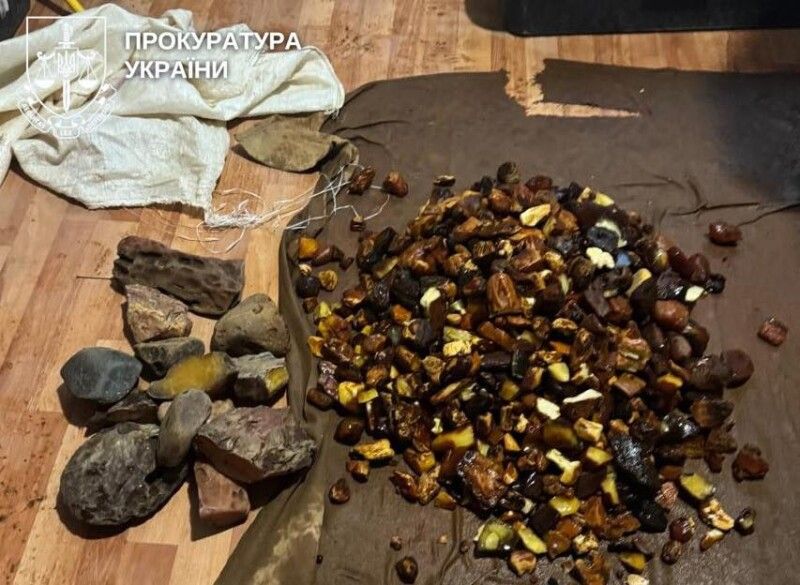 На початку квітня під час обшуків правоохоронці вилучили понад 80 кг каміння бурштину різних фракцій, обладнання для його обробки, а також ваги, мобільні телефони та інші речові докази.