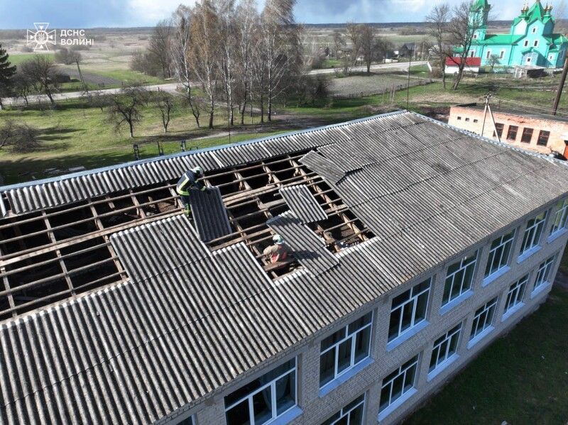У селі Підцирʼя Камінь-Каширського району рятувальники демонтували аварійні елементи покрівлі місцевого закладу, що могли впасти від поривів вітру.