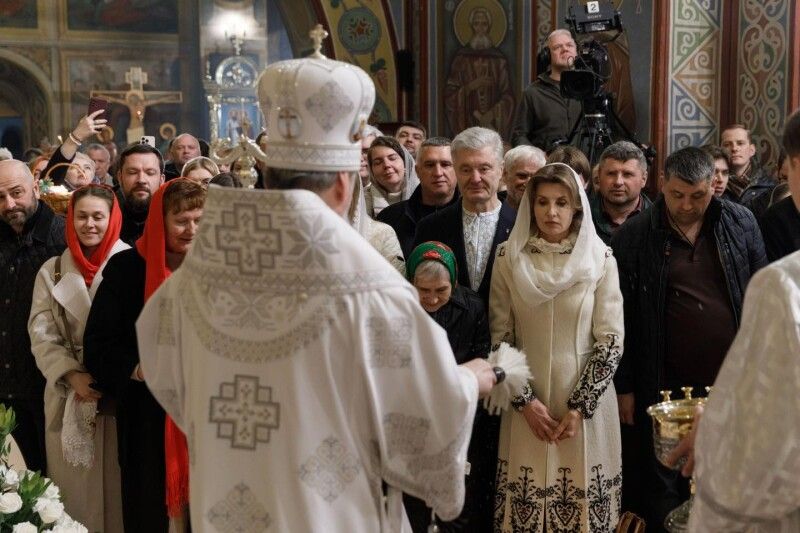 Петро і Марина Порошенки взяли участь у Пасхальному богослужінні у Свято-Михайлівському Золотоверхому кафедральному соборі, яке очолив Предстоятель Православної Церкви України Блаженнійший Митрополит Київський і всієї України Епіфаній