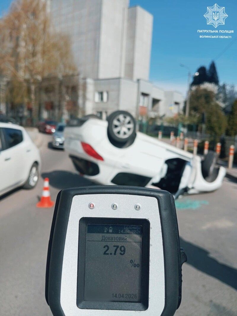 Під час спілкування з жінкою інспектори виявили у неї ознаки алкогольного сп’яніння. Вона погодилася пройти огляд на місці за допомогою приладу Драгер. Результат – 2,79 проміле, що майже у 14 разів перевищує допустиму норму.