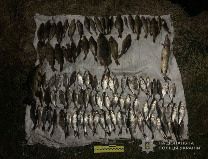 На березі озера виявлено громадянина який здійснював лов забороненими знаряддями лову (п’ять риболовецьких сіток) з добутими водними біоресурсами: плітка – 34 екз., плоскирка – 36 екз., щука – 1 екз., лин – 1 екз., окунь звичайний – 35 екз., загальною вагою 8,700 кг.