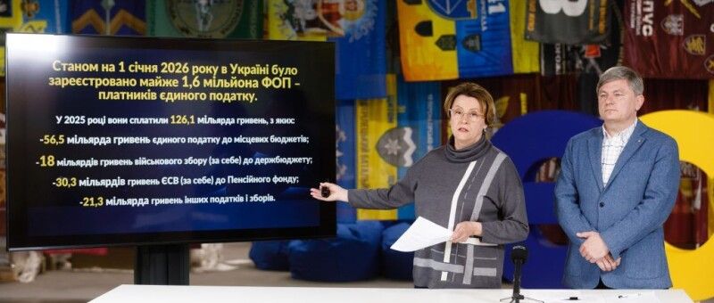 Вона нагадала, що влада планувала обкласти ПДВ ФОПів із доходом більше 1 млн грн на рік: «це мало стосуватися 628 тис. фізичних осіб-підприємців. Ось дані за 2025 рік. 1 млн 600 тис. підприємців працюють на спрощеній системі оподаткування. У 2025 році вони сплатили 126 млрд грн податків. 56,5 млрд грн – це єдиний податок до місцевих бюджетів. 18 млрд грн – це військовий збір до державного бюджету. 30 млрд грн – ЄСВ до Пенсійного фонду. Інших податків 21,3 млрд грн. У них є наймані працівники, і таких 980 тис. осіб. В середньому 4 найманих працівника на одного підприємця. ФОПи сплатили за найнятих осіб 26,4 млрд грн до Державного бюджету і місцевих в тому числі», – розповіла Ніна Южаніна.