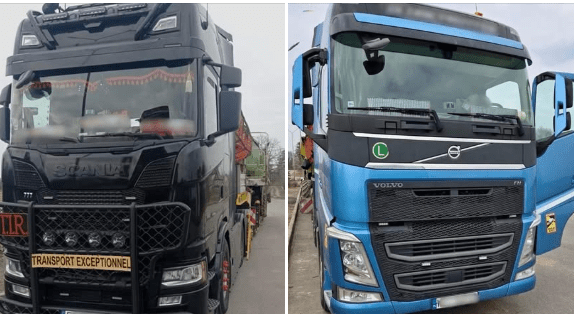 Інспектори Управління державного нагляду (контролю) у Волинській області під час здійснення рейдової перевірки на автодорозі Н-22 зупинили дві вантажівки іноземних перевізників марок VOLVO та SCANIA, які мали ознаки габаритних порушень.