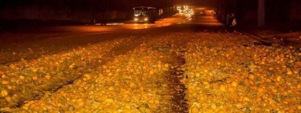 Цитрусових було так багато, що для прибирання дороги викликали комунальний трактор і машину для чистки асфальту.