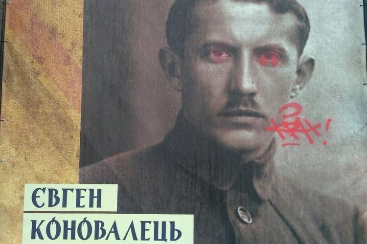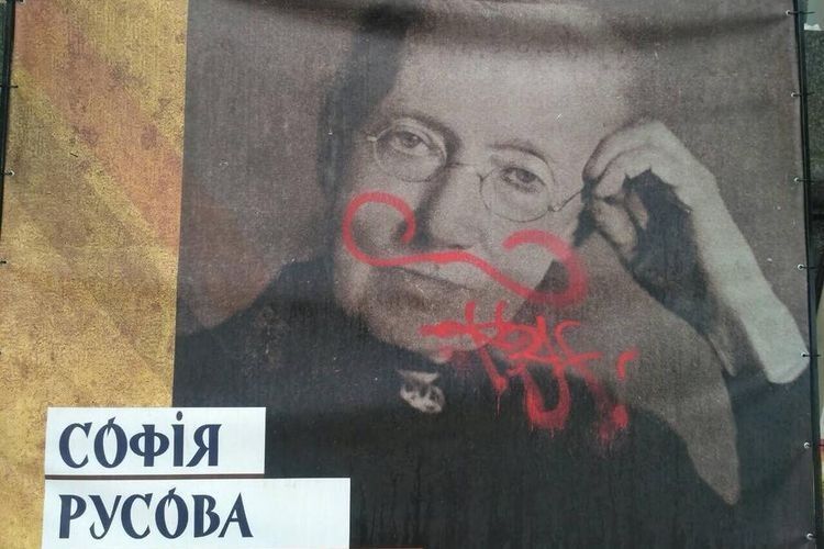У ніч на 8 березня невідомі розмалювали банери виставки "Українська революція 1917-1921"/